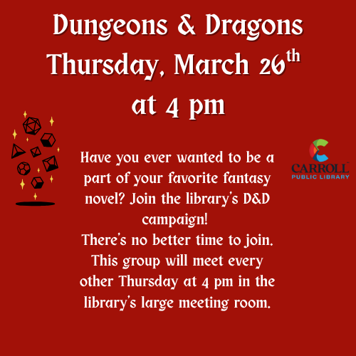 Adventure awaits! Join our Dungeons & Dragons program and dive into a world of imagination, teamwork, and storytelling. Whether you’re a seasoned player or completely new to the game, everyone is welcome. We’ll provide everything you need—just bring your creativity and get ready to roll the dice!