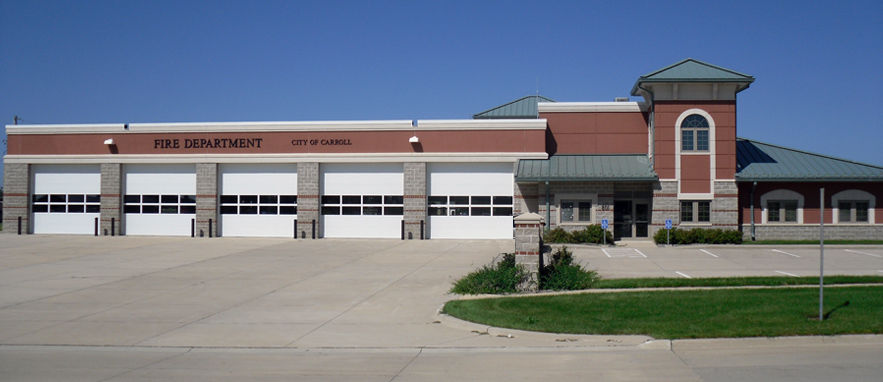Construction of the new 14,500 sq. ft. Carroll Fire Station started July 25th, 2005 and was completed in July of 2006.  Badding Construction Company of Carroll served as the general contractor for the project.  Total cost of the project was nearly 2.3 million dollars which includes purchase of land, engineering fees, construction, and all station furnishings.  Carroll’s new fire station is situated on 4.67 acres and is located at 801 N. Bella Vista Dr. on the eastern edge of the City of Carroll.  The building itself was constructed utilizing concrete block and steel with all areas being protected by a fire sprinkler and alarm system.