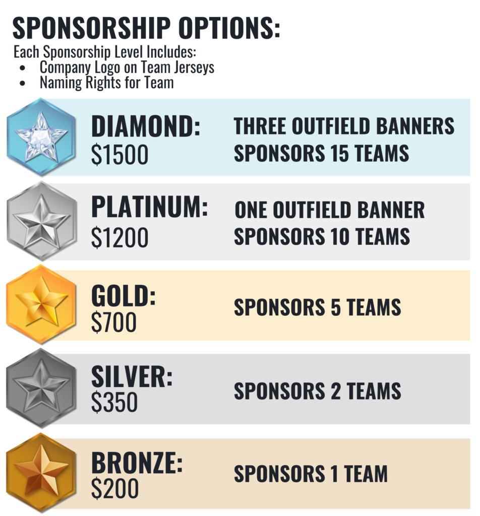 Sponsorships play a crucial role in reducing the expenses associated with youth sports, enabling us to maintain low registration fees. Online application can be found HERE