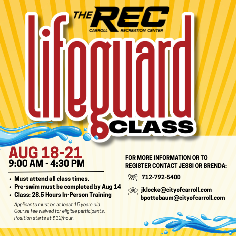 The Carroll Recreation Center proudly serves Carroll and the surrounding communities with one of the area’s top recreational facilities. The center offers a wide range of amenities, including an indoor swimming pool, basketball courts, a racquetball court, a fully equipped weight room and cardio area, a group fitness studio, a theater, and rental rooms that are perfect for family gatherings, parties, and community events.