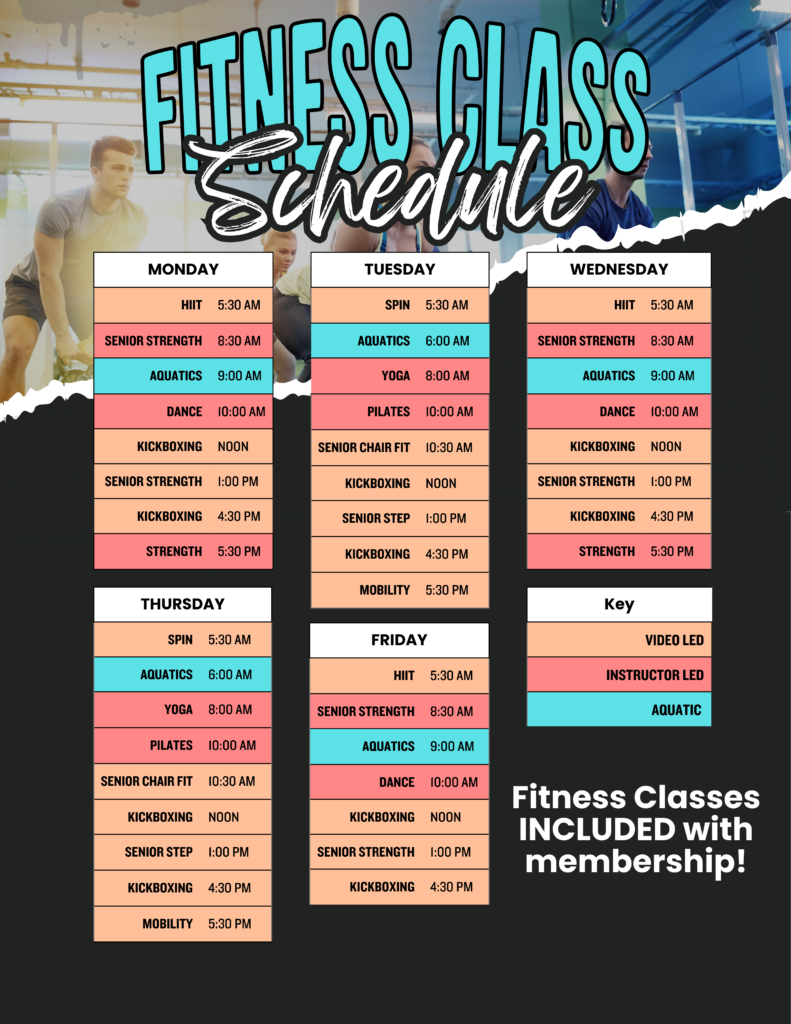 Classes that have “WUI” after class name include a warm up. Please spend 5 min before class begins warming up. Do your favorite warm up or choose warm up options that are posted on the wall of the fitness room.